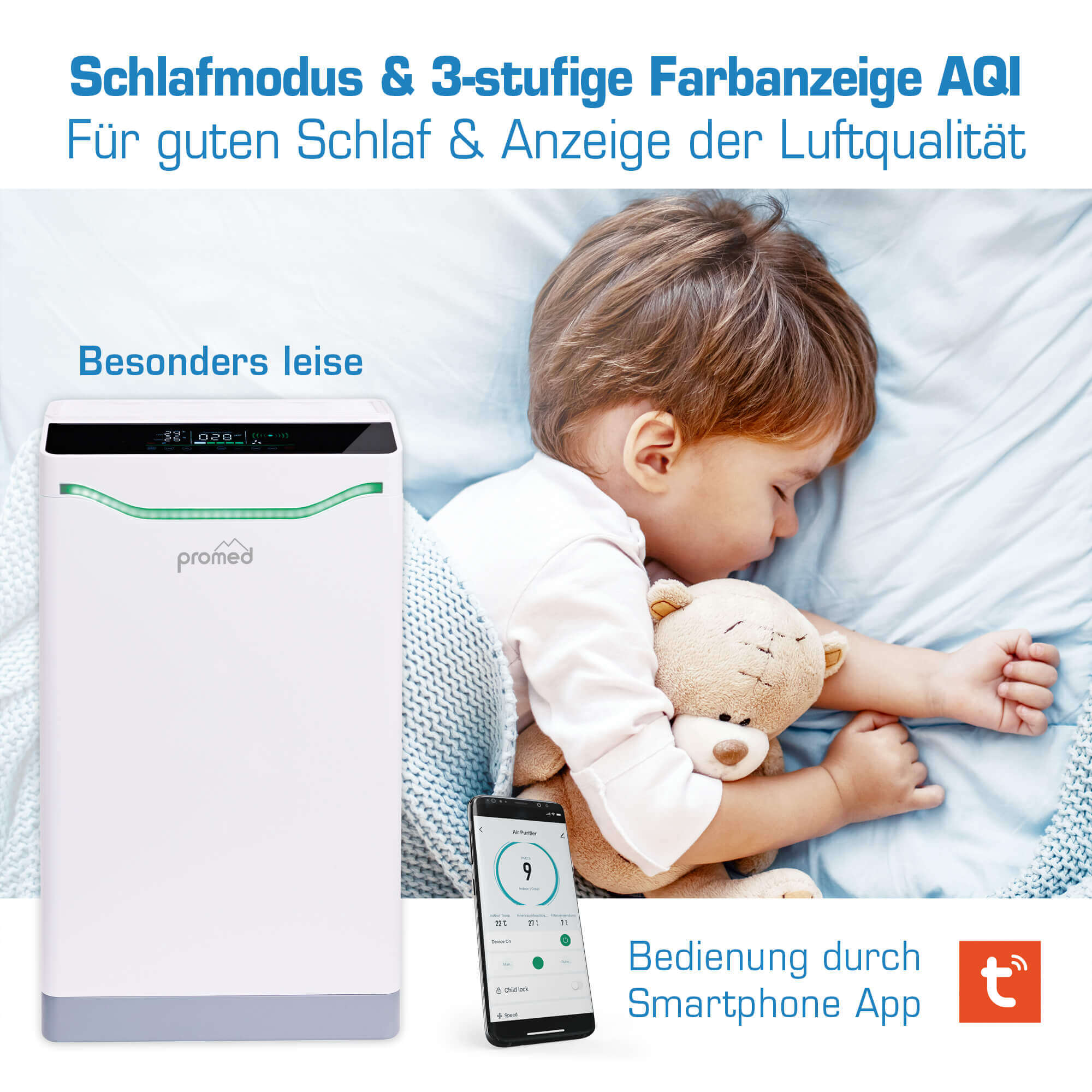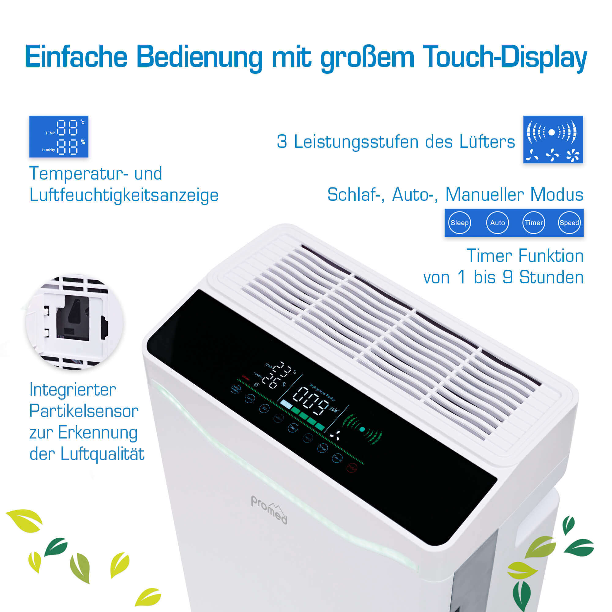 u#x308;ber den Verschmutzungsgrad der Luft. Zusätzlich kann die Luft durch einen Ionengenerator verbessert werden.