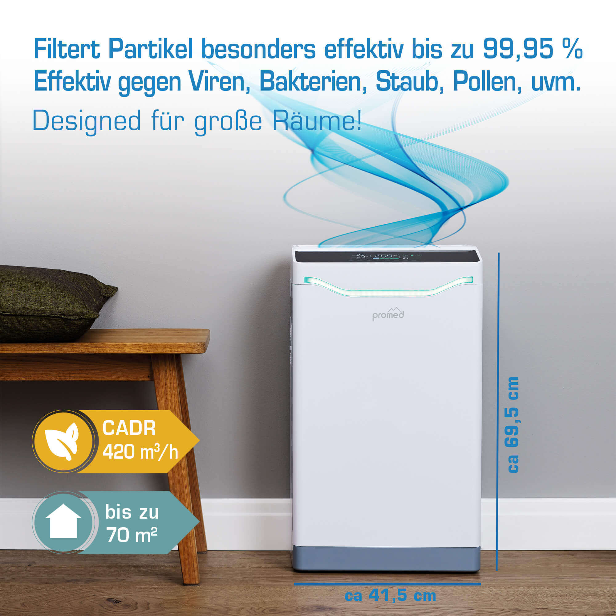 Fu#x308;r Räume bis zu 70 m2 geeignet, besonders leise